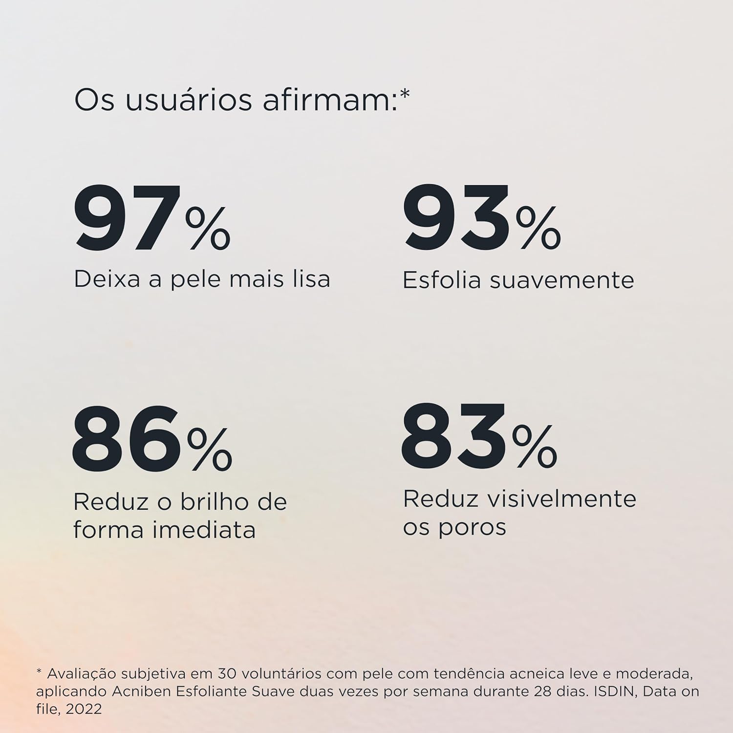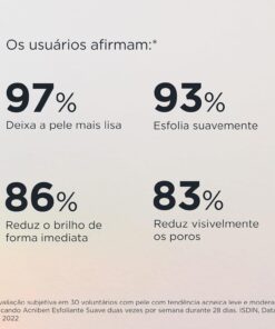 Acniben Esfoliante Gel facial esfoliante com micropartículas de celulose. Limpa e desobstrui os poros. Elimina células mortas da superfície cutânea. Contém Zinco PCA, que desobstrui os poros para uma pele mais uniforme e com menos oleosidade. Esfolia suavemente