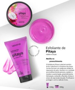 O esfoliante pitaya labotrat contém ácido hialurônico e bioativos da pitaya. Juntos formam um poderoso aliado na reparação da pele. Auxiliam no combate ao envelhecimento precoce, ajudam a manter a sustentação,